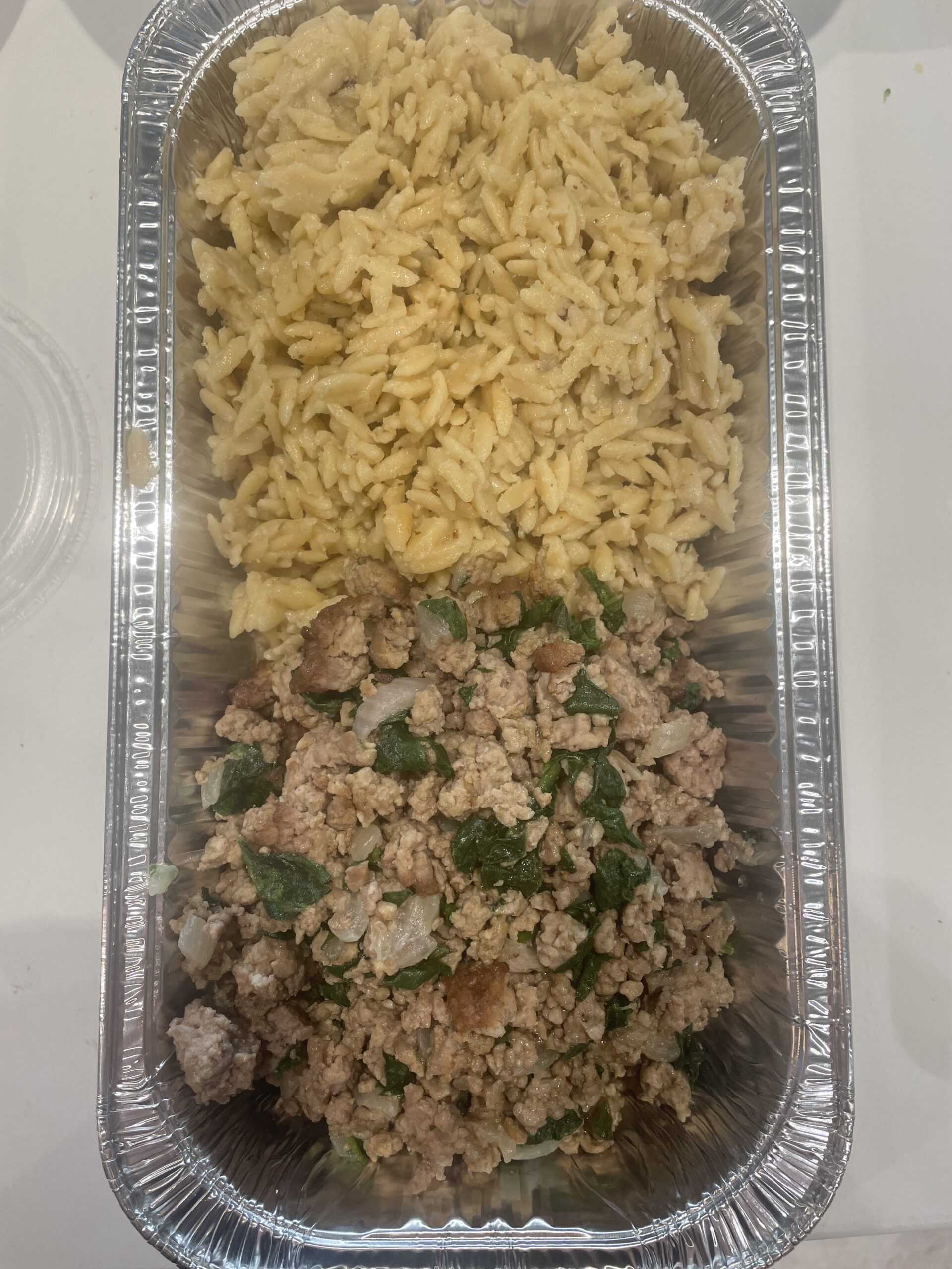 Serving Size: 4 oz Sausage Mix, 8oz Orzo, 2oz Parmesan cheese