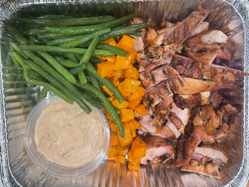 Serving Size: 6oz Chicken 3oz Sweet Potato 2oz Green Beans 2oz Erins Dipping Sauce