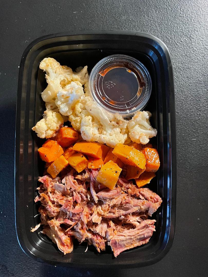 Serving Size: 6oz Pork Shoulder 3oz Sweet Potato 2oz Cauliflower 2oz BBQ Sauce